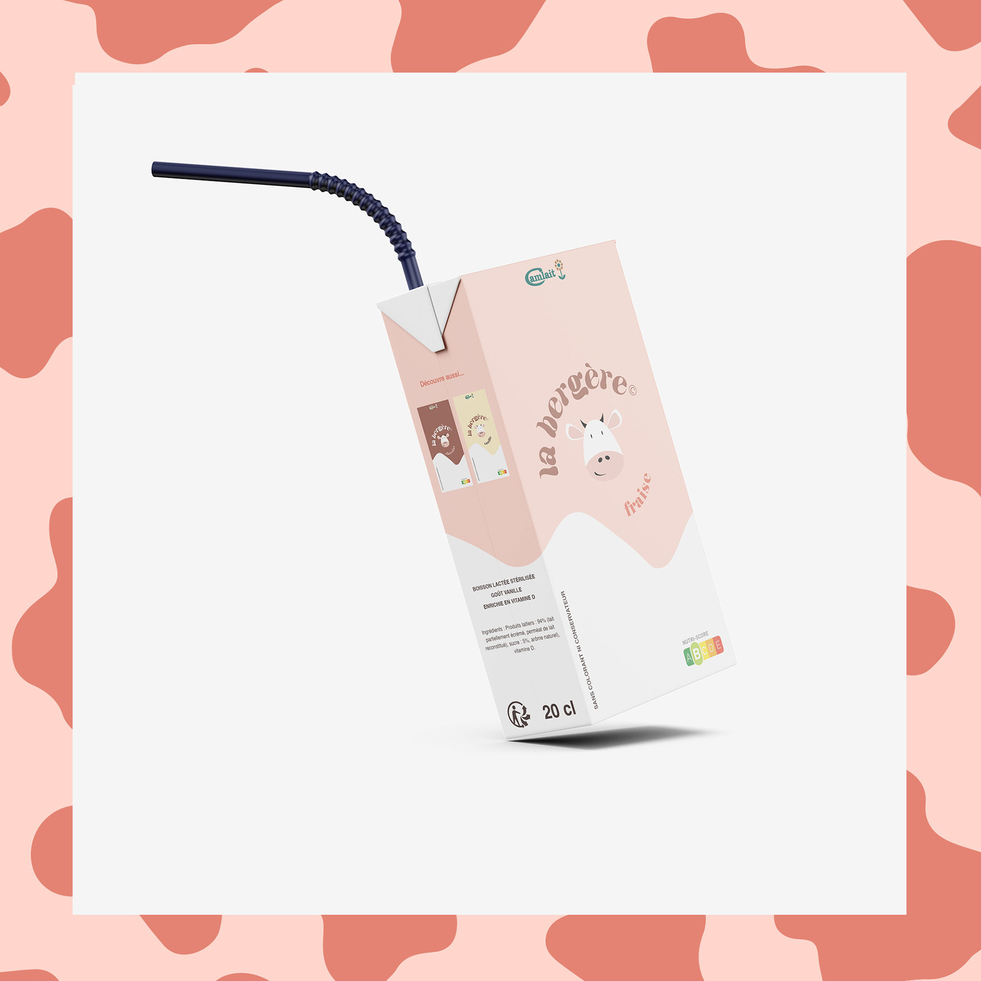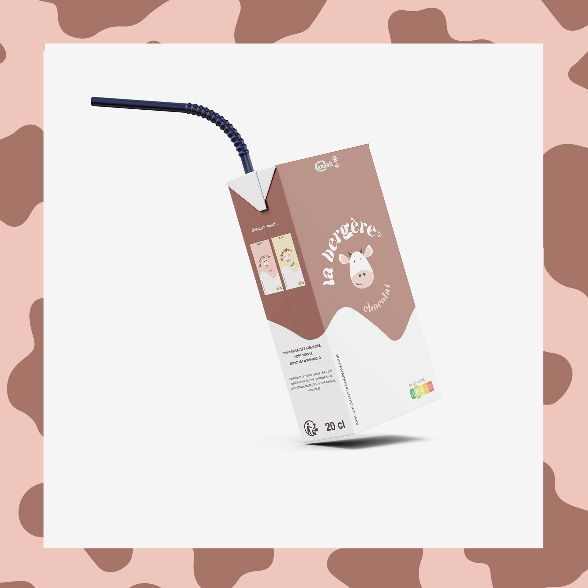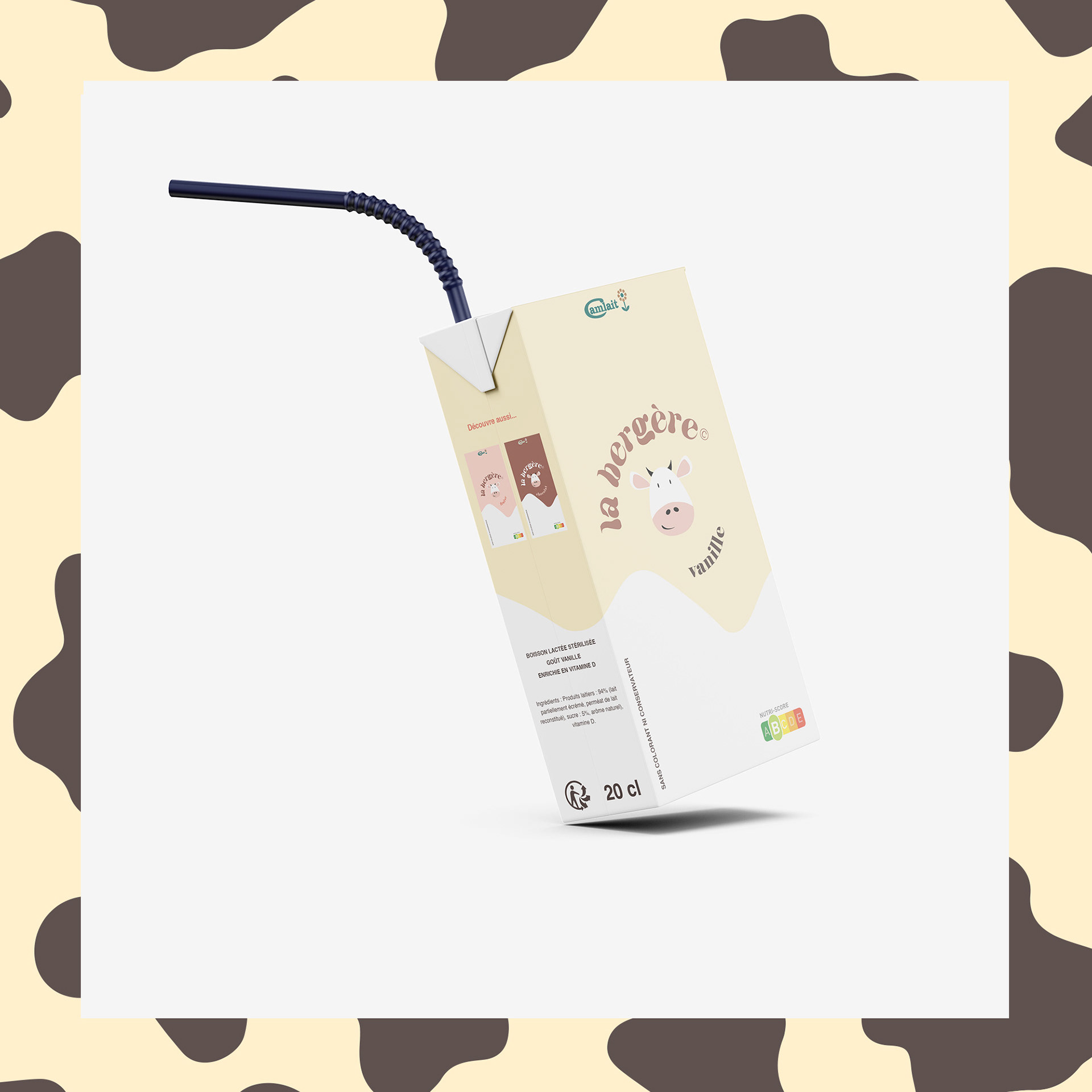 La Bergère est un produit issu de la gamme des yaourts à boire de la société camerounaise Camlait. Il s’agit de mon 1er projet packaging. Nostalgique de ce produit qui a accompagné mon enfance et dont le packaging est discutable, j’ai fait une proposition expérimentale de redesign.